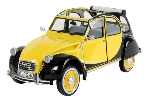 En 1948, el 2CV se presentó al público por primera vez. Con este pequeño automóvil purista, barato, fácil de mantener y simple de operar, Citroën ofreció un vehículo robusto producido en serie para personas, que tenía una suspensión extremadamente buena, en consonancia con la red de carreteras poco desarrollada. A partir de 1981, cuando el 2 CV se había convertido en un objeto de culto, apareció en serie una versión bicolor, el 2 CV 6 Charleston negro burdeos, seguido en septiembre de 1982 por una versión amarillo-negra, ambas equipadas con motores bóxer bicilíndricos refrigerados por aire de 0,6 litros y una potencia de 29 CV. Según el original, el kit cuenta con tapas cromadas, los típicos faros cromados, así como un motor de varias partes y, por supuesto, un capó móvil.