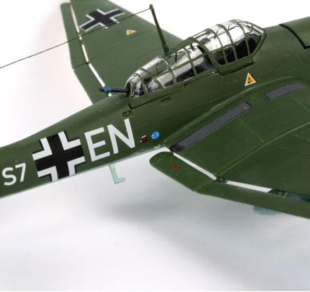 El Junkers Ju 87, a menudo conocido como «Stuka», desempeñó un papel fundamental en las primeras fases de la Segunda Guerra Mundial. Con su forma característica y el estridente sonido de su sirena durante los bombardeos en picado, se convirtió en un símbolo de la estrategia Blitzkrieg alemana. Este modelo representa la versión G/D del avión, que fue diseñado especialmente para el combate terrestre y la caza de tanques. Con este kit, podrá dar vida a un pedazo de la historia y crear una impresionante maqueta para su colección.