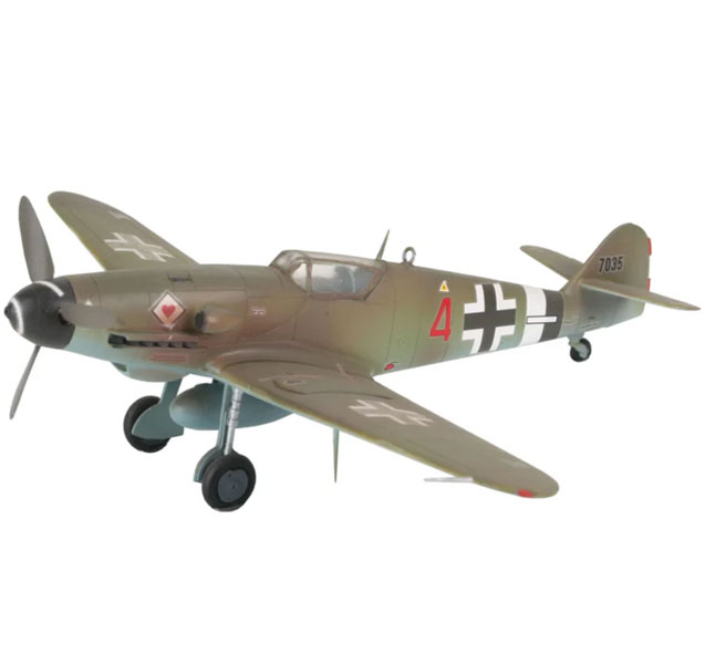 El Messerschmitt Bf 109 fue un elemento clave en todas las acciones de la Segunda Guerra Mundial y tuvo su vuelo inaugural el 28 de mayo de 1935. Propulsado por un motor DB 605 de hasta 1.435 CV, el caza monoplaza alcanzaba una velocidad máxima de 594 km/h a una altitud de 7.400 m. En total se fabricaron unas 35.000 unidades de este modelo de avión. Con nuestro kit de modelismo, podrá recrear una parte de esta impresionante historia y conocer de cerca los detalles técnicos de este extraordinario avión.